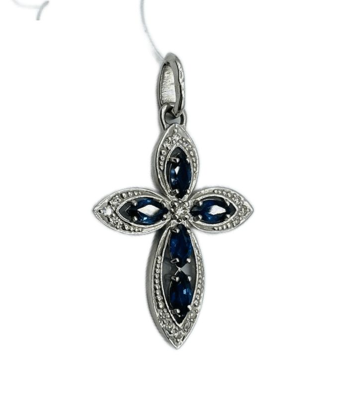 подвеска крест с сапфирами